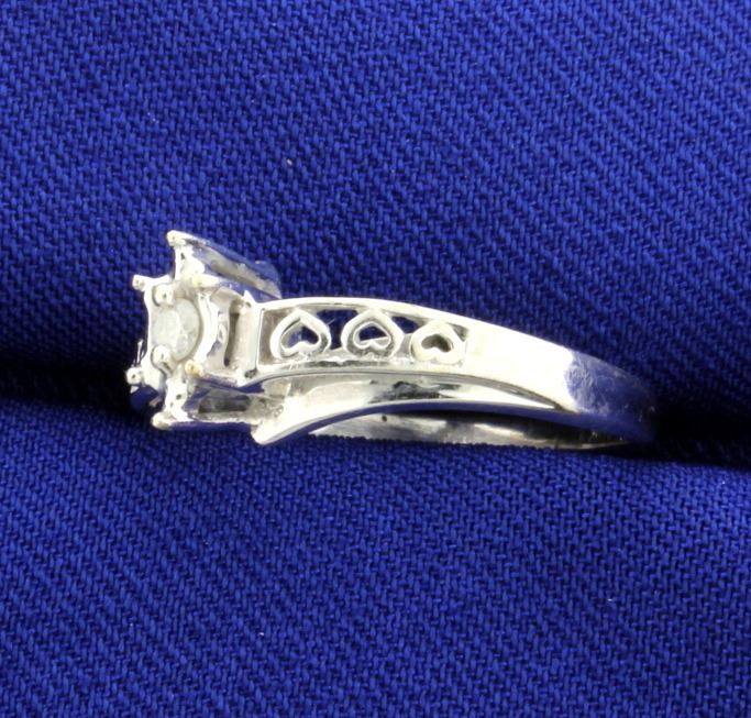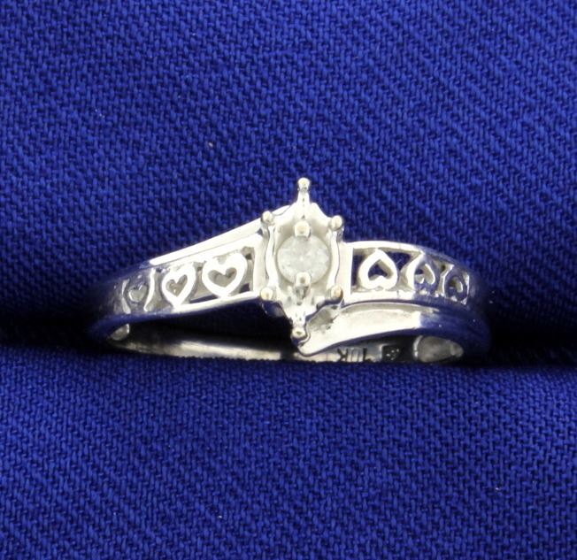 In 10K white gold, the ring contains one .05ct diamond that is G color/I clarity. Size 6 3/4 2.2g