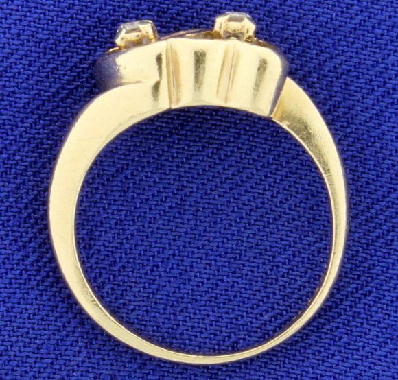 In 10K yellow gold, there are two .02ct round diamonds. Size 4 3/4            2.4g