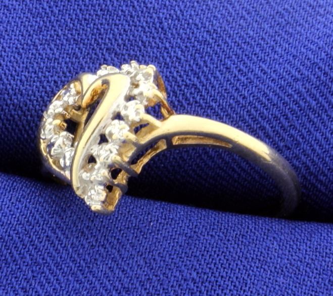 In 10K yellow gold this ring contains one .01ct diamond. Size 7 2.2g
