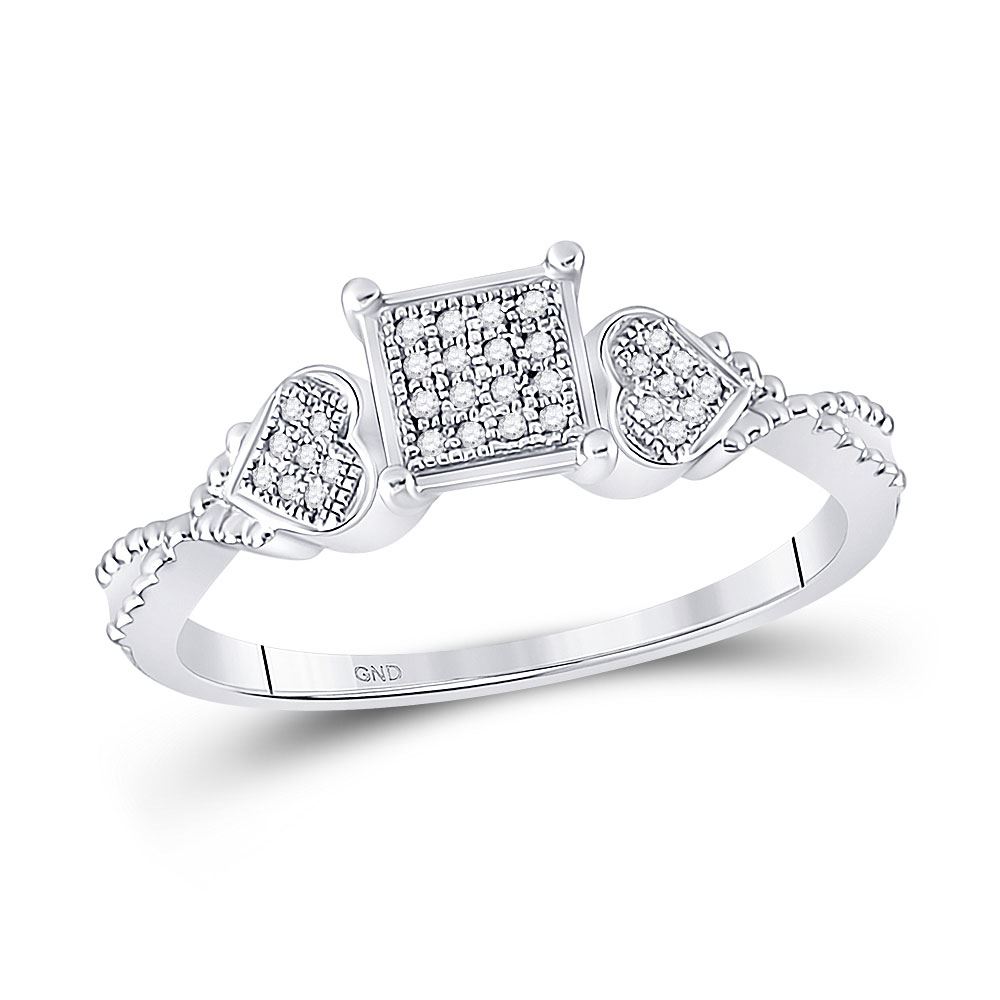 Sterling Silver Womens Round Diamond Heart Square Ring 1/10 Cttw