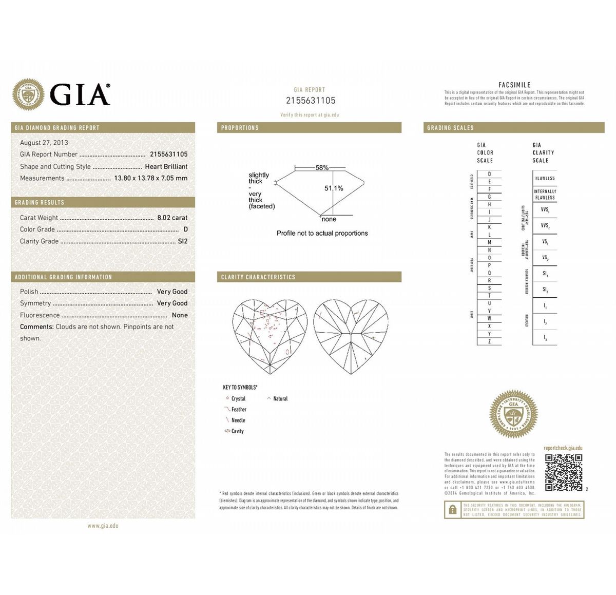 Natural Diamond Heart shape 8.02 ct - D/SI2 - GIA CERTIFIED; 100% earth mined...natural free of any treatment.