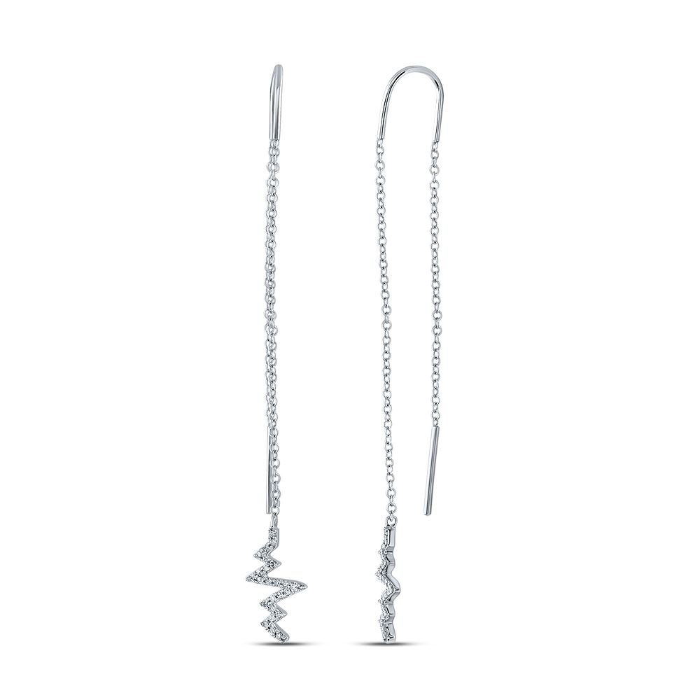14kt White Gold Womens Round Diamond Heartbeat Threader Dangle Earrings 1/6 Cttw