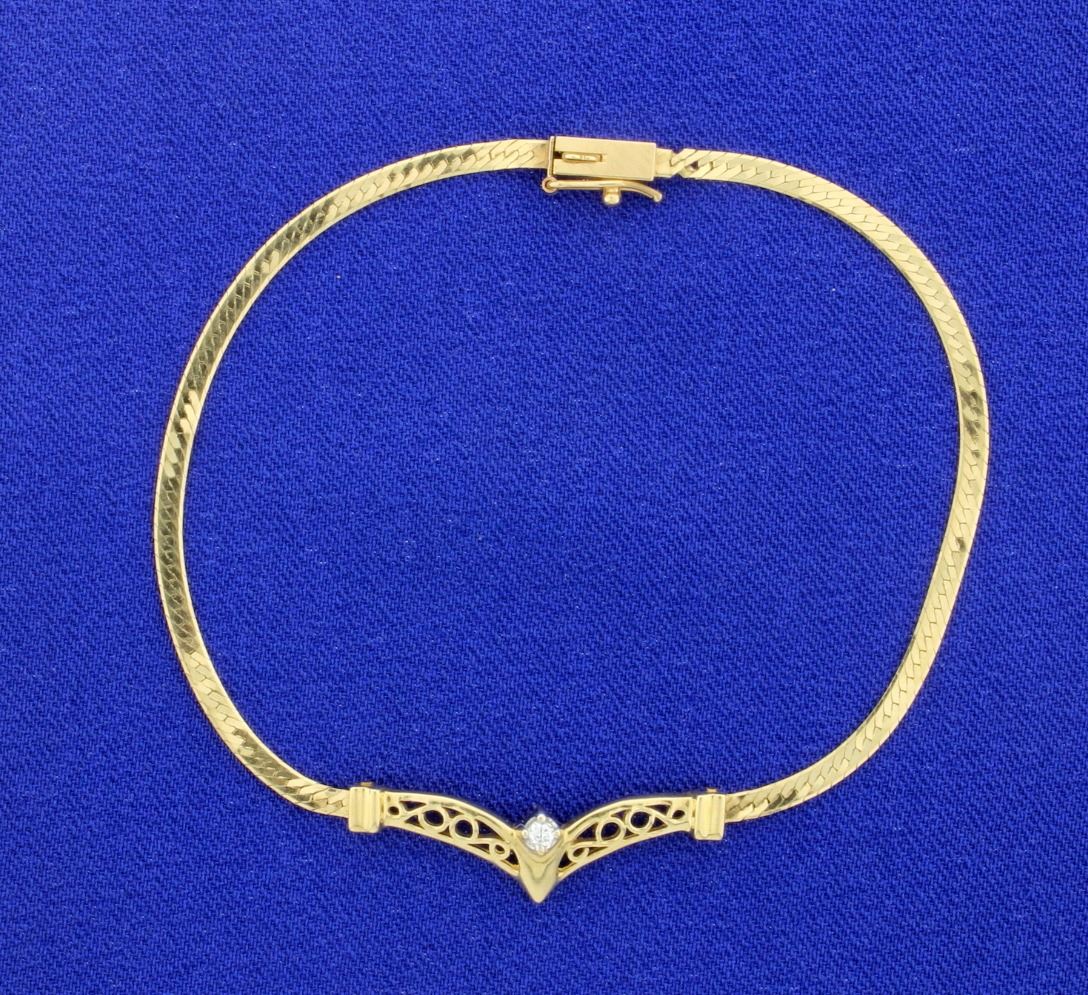 In 14K yellow gold, the bracelet is a herringbone design and contains a .03ct diamond. The bracelet is 7 1/4 inches long and has safety clasp. 3.3g