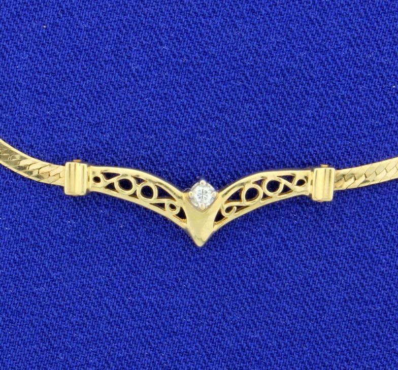 In 14K yellow gold, the bracelet is a herringbone design and contains a .03ct diamond. The bracelet is 7 1/4 inches long and has safety clasp. 3.3g