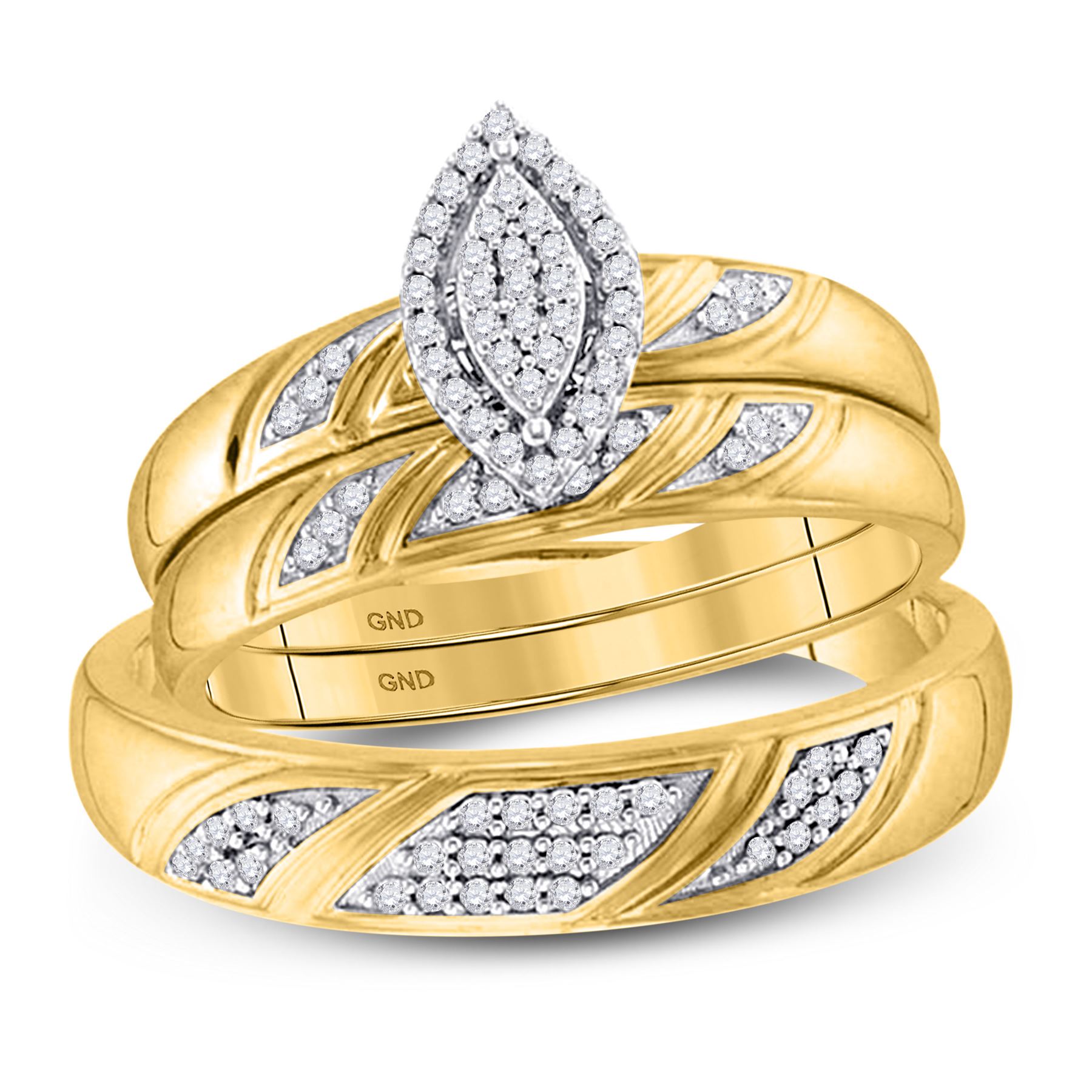 REF-30Y9N ---- Diamond His Hers Matching Trio Wedding Engagement Bridal Ring Set 1/4 Cttw 10k Yellow Gold