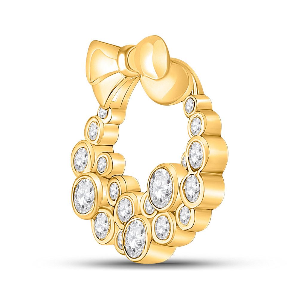 10kt Yellow Gold Womens Round Diamond Holiday Wreath Pendant 1/2 Cttw