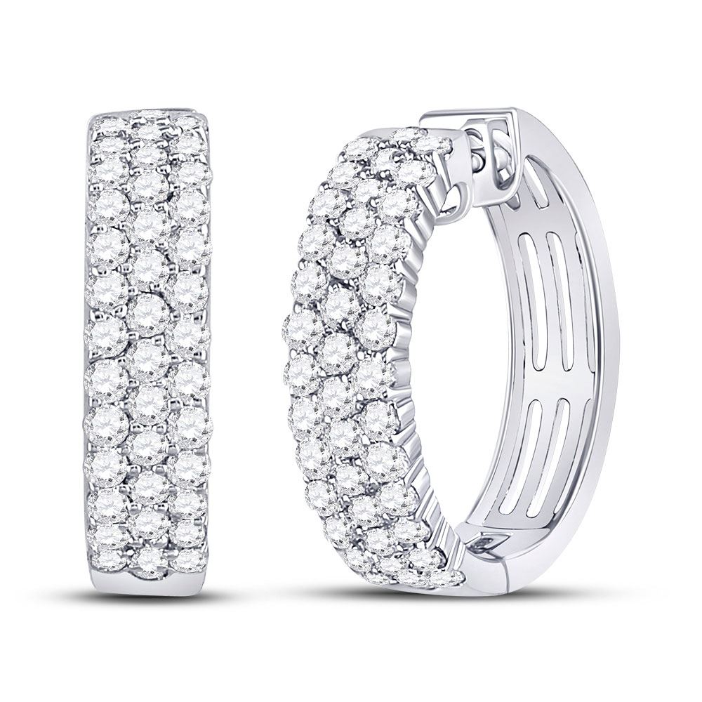 10kt White Gold Womens Round Diamond Hoop Earrings 1-1/2 Cttw