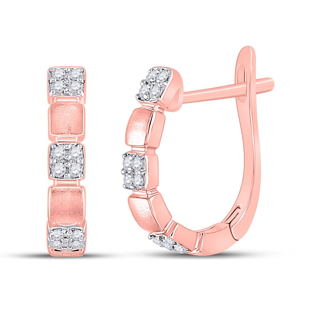 14kt Rose Gold Womens Round Diamond Hoop Earrings 1/10 Cttw