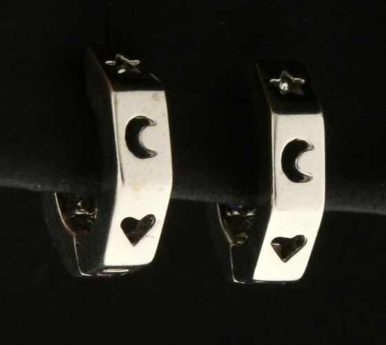Diamond Hoop Earrings with Heart, Moon, and Star Design