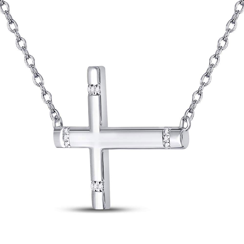 Sterling Silver Womens Round Diamond Horizontal Cross Necklace 1/20 Cttw