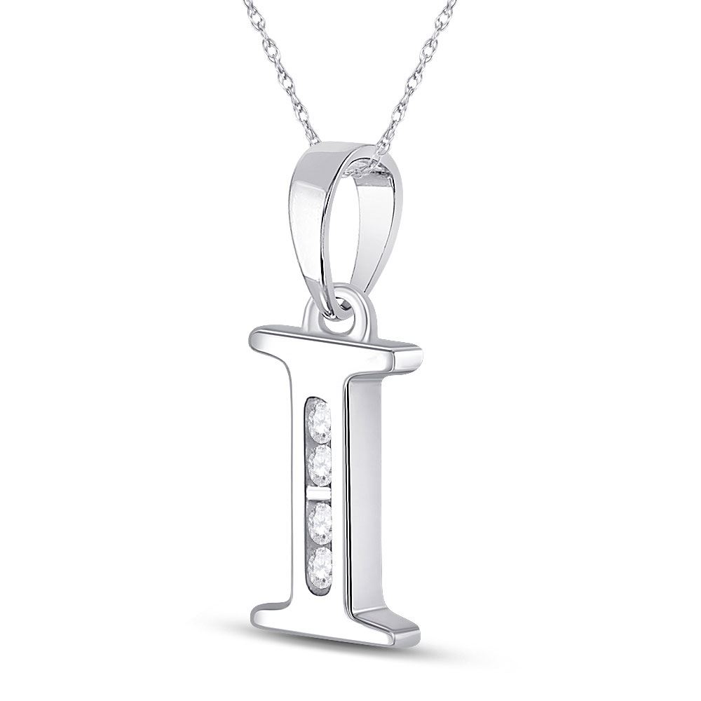 10kt White Gold Womens Round Diamond I Initial Letter Pendant 1/20 Cttw