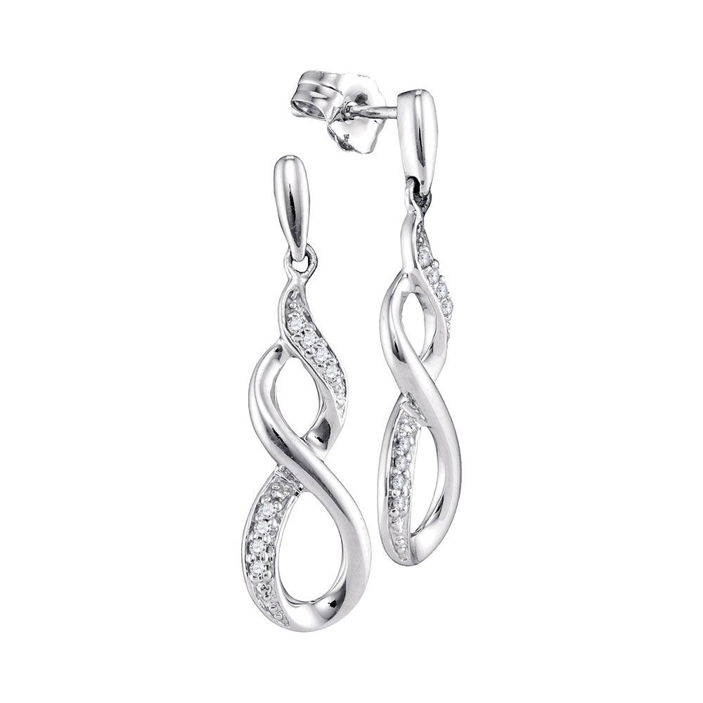 REF-14M5X - SKU: GD97380 ---- Diamond Infinity Dangle Earrings 1/20 Cttw 10kt White Gold
