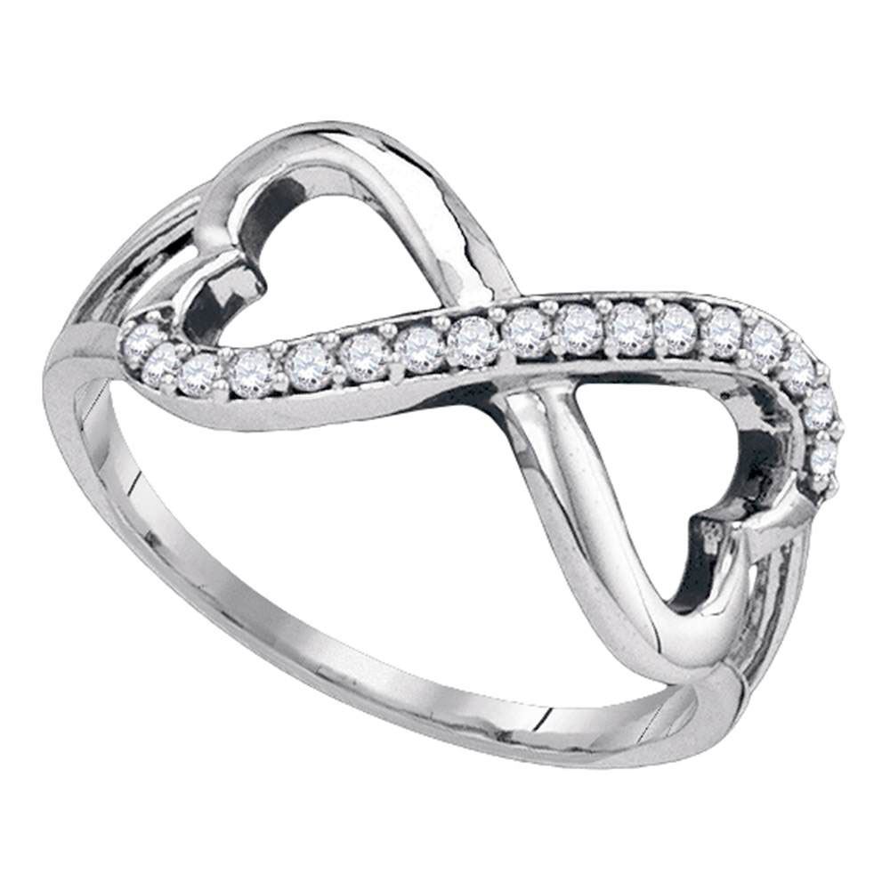 10kt White Gold Womens Round Diamond Infinity Double Heart Ring 1/6 Cttw