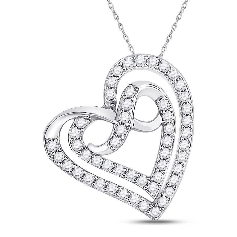 10kt White Gold Womens Round Diamond Infinity Heart Pendant 1/3 Cttw