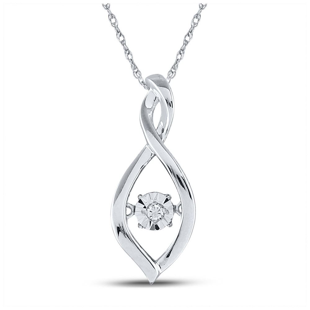 Sterling Silver Womens Round Diamond Infinity Twinkle Moving Pendant .03 Cttw