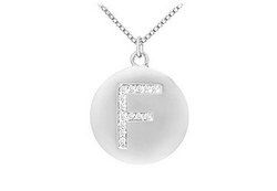 Perfectly made in polished 14K white gold this disc pendant is inscribed with the letter F. This alphabet is embellished with 11 brilliant-cut round diamonds with a total diamond weight (TDW) of 0.25 ct. Wear your identity symbol.
