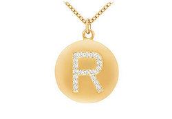 Perfectly made in polished 14K yellow gold this disc pendant is inscribed with the letter R. This alphabet is embellished with 17 brilliant-cut round diamonds with a total diamond weight (TDW) of 0.33ct. Wear your identity symbol.