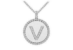 This alphabet disc pendant is inscribed with the diamonds letter "V" and is surrounded by sparking round white diamonds of the circle. Perfectly made in polished 14K white gold & has a total weight (TGW) 0.50 carat. It comes along with standard 16 inches gold chain. Wear your identity symbol.