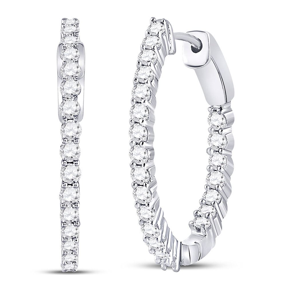 REF-122K7R - SKU: GD113135 ---- Diamond Inside Outside Hoop Earrings 2.00 Cttw 10kt White Gold