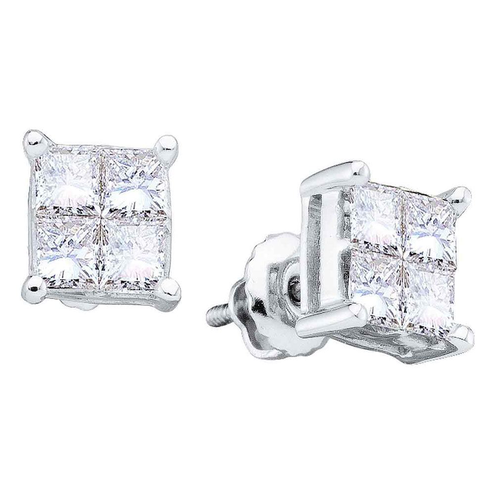 REF-44Y5X - SKU: GD18572 ---- Diamond Invisible-set Screwback Stud Earrings 1/2 Cttw 14kt White Gold