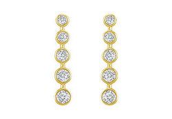Five brilliant-cut round diamonds are set in the stylish bezel-setting made in 14K yellow gold. Graduation of diamonds indicates a progress towards success love or happiness in one's life. These journey earrings have a total weight (TDW) of 2.00 ct.
