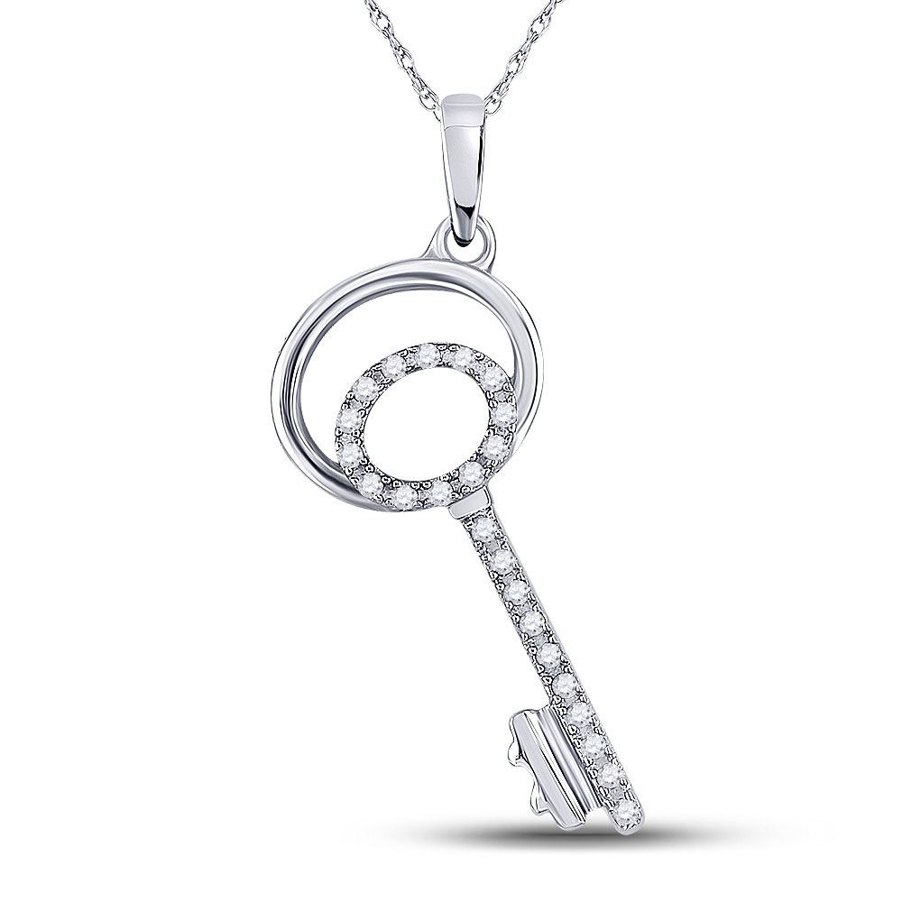 10kt White Gold Womens Round Diamond Key Pendant 1/12 Cttw