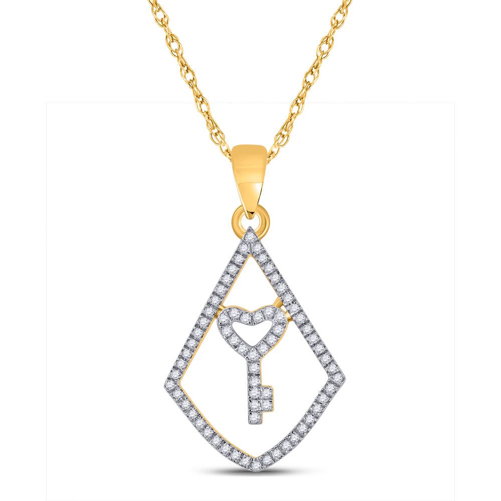 10kt Yellow Gold Womens Round Diamond Key Pendant 1/5 Cttw