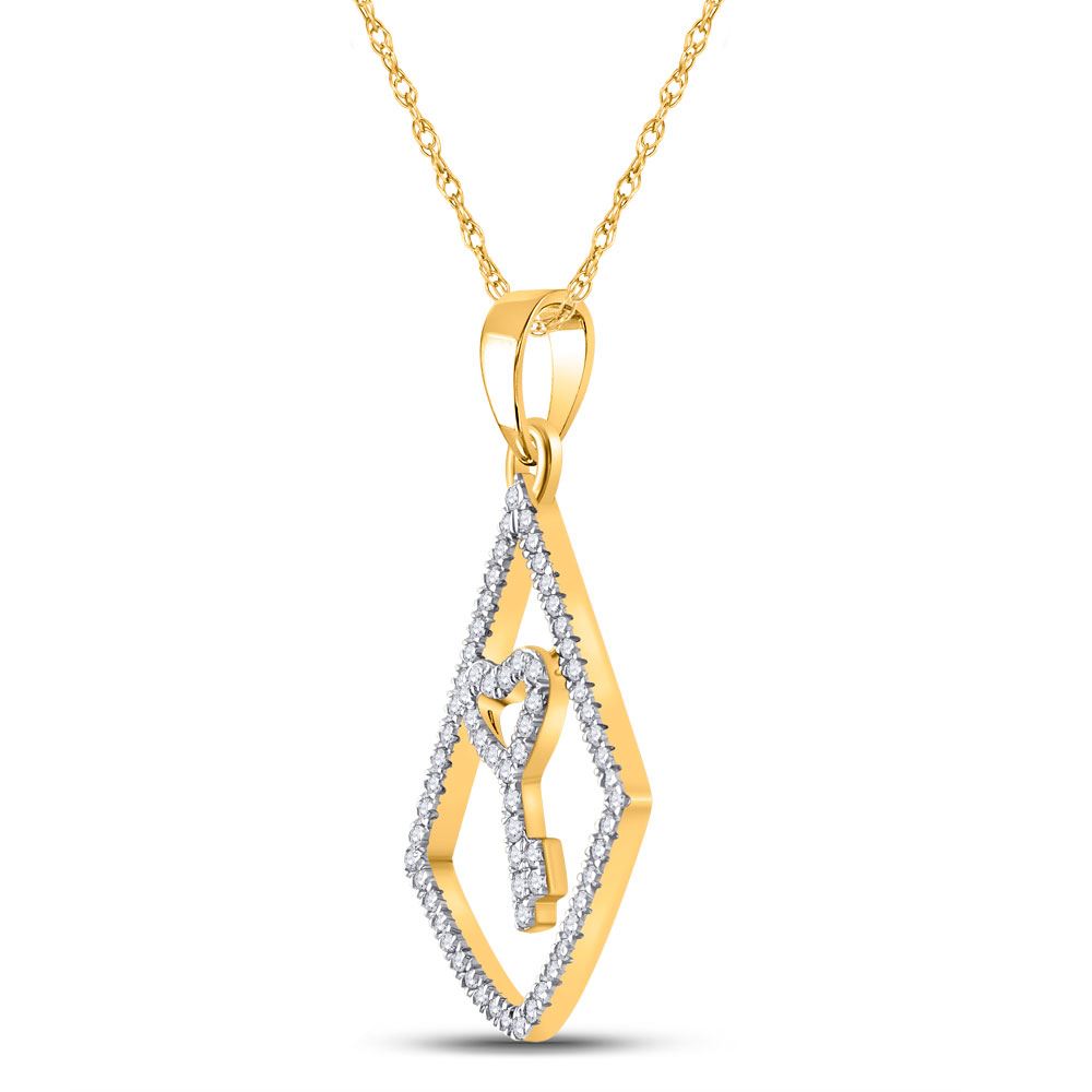 10kt Yellow Gold Womens Round Diamond Key Pendant 1/5 Cttw