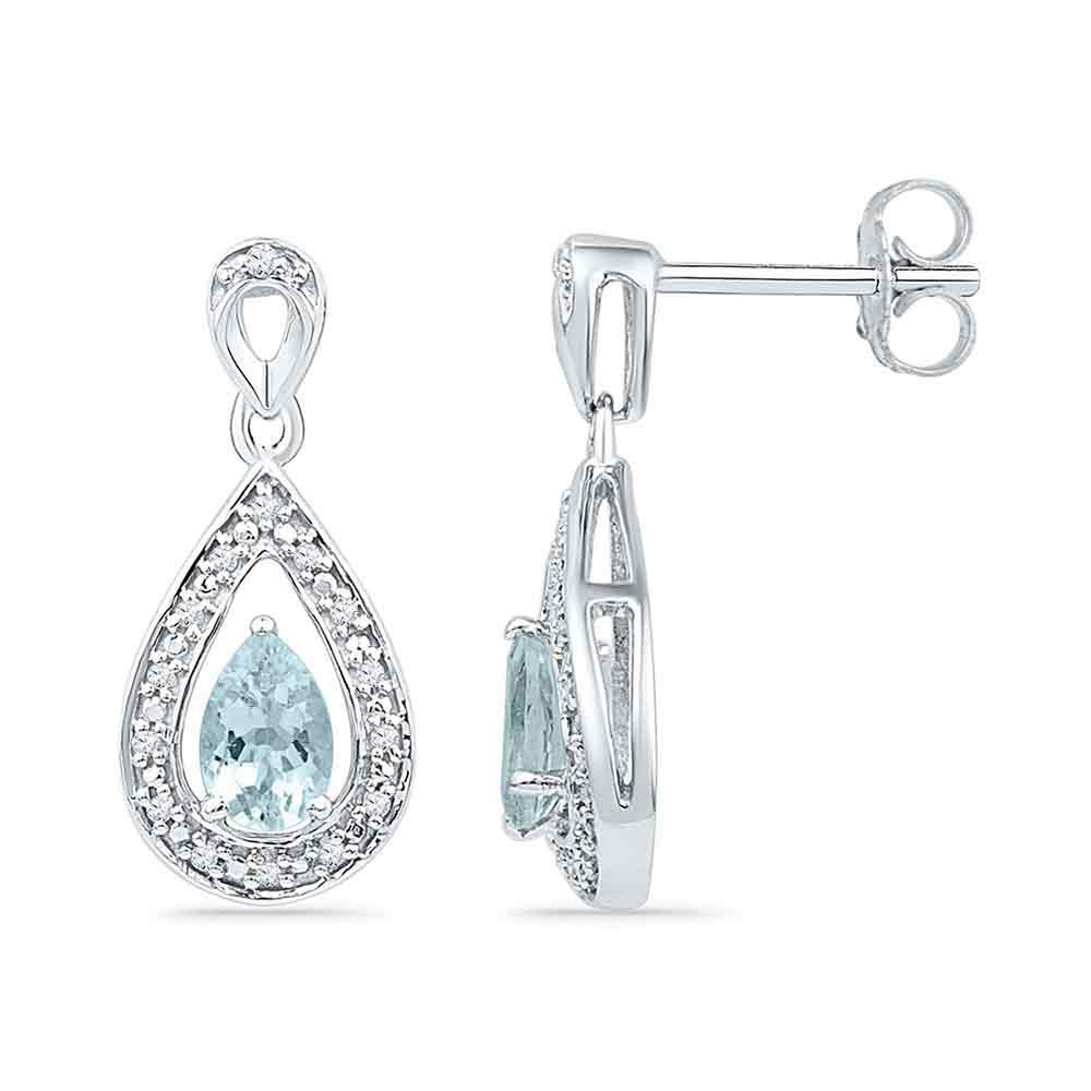 10k White Gold Diamond & Lab-Created Aquamarine Teardrop Dangle Earrings 5/8 Cttw