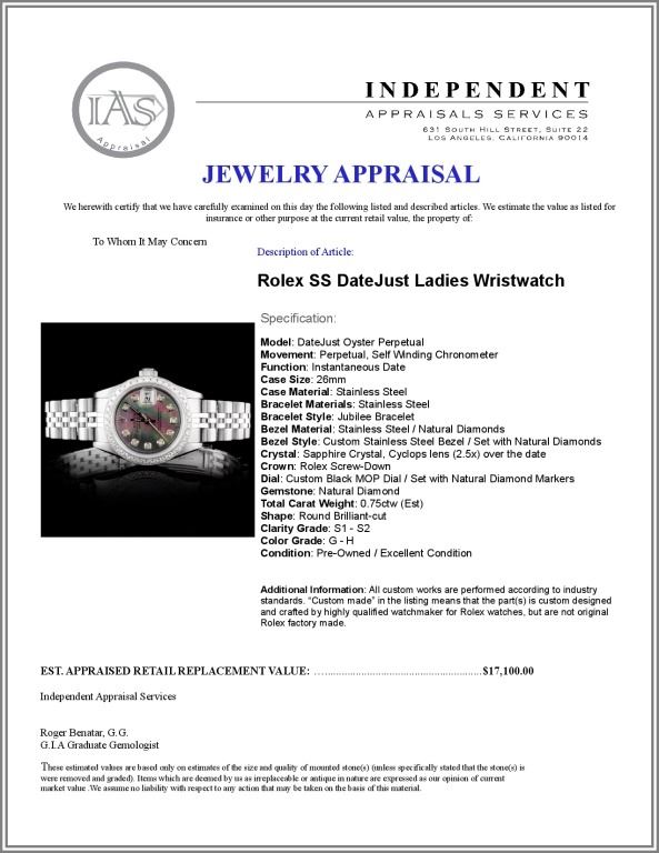 Dial: Custom Black MOP Dial / Set with Natural Diamond Markers