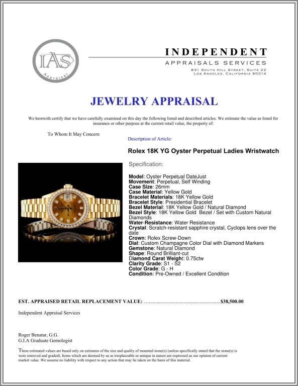 Dial: Custom Champagne Color Dial with Diamond Markers