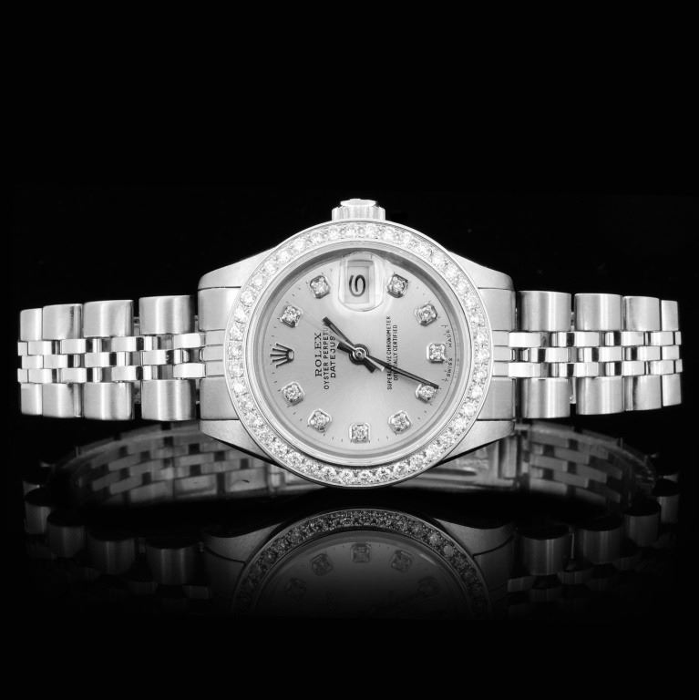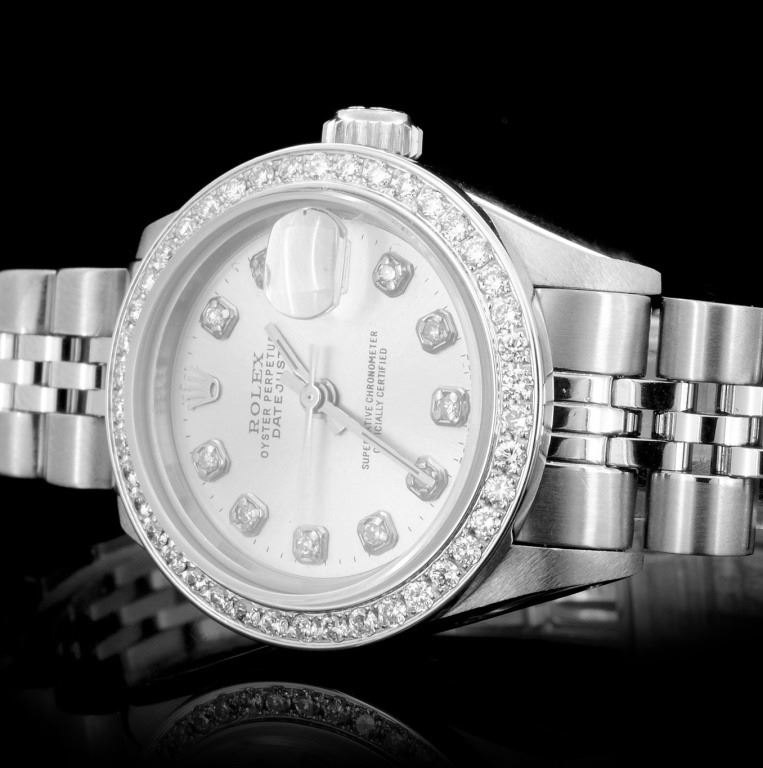 Dial: Custom silver mother of pearl dial / Set with custom diamond markers