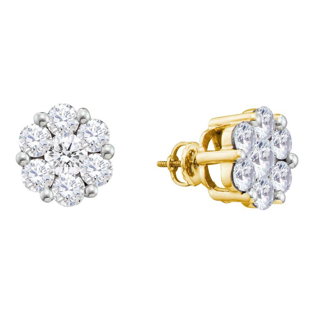 14kt Yellow Gold Womens Round Diamond Large Flower Cluster Stud Earrings 1-1/2 Cttw