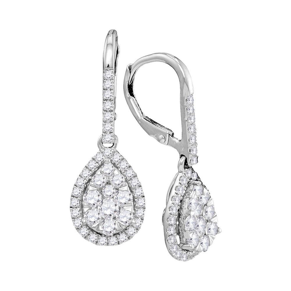 REF-115V5A - SKU: GD104792 ---- Diamond Leverback Teardrop Dangle Earrings 1-3/8 Cttw 14kt White Gold