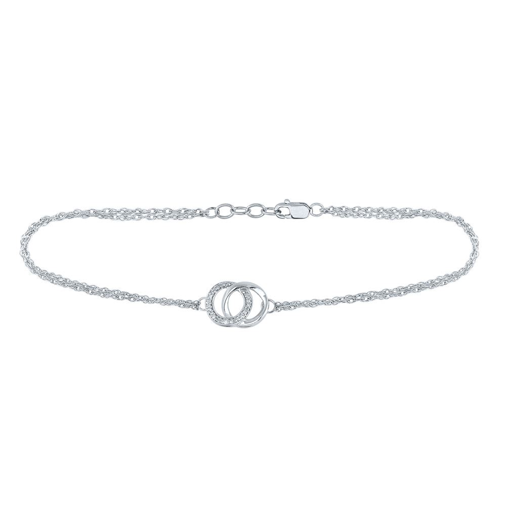 Sterling Silver Womens Round Diamond Linked Double Circle Fashion Bracelet 1/20 Cttw