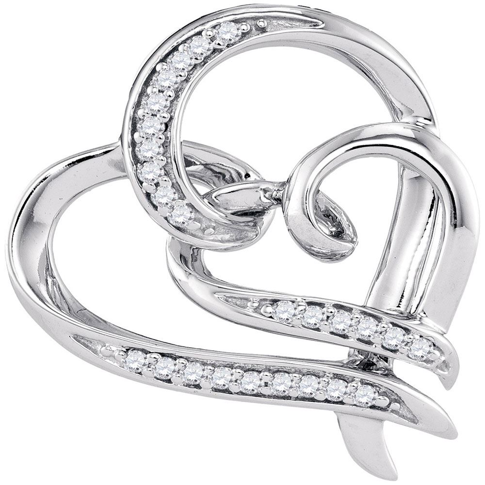 10kt White Gold Womens Round Diamond Linked Double Heart Pendant 1/10 Cttw