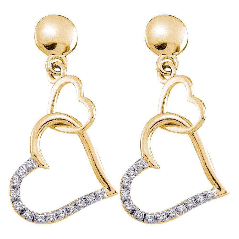 REF-13X6Y - SKU: GD48759 ---- Diamond Linked Hearts Dangle Screwback Earrings 1/10 Cttw 14kt Yellow Gold