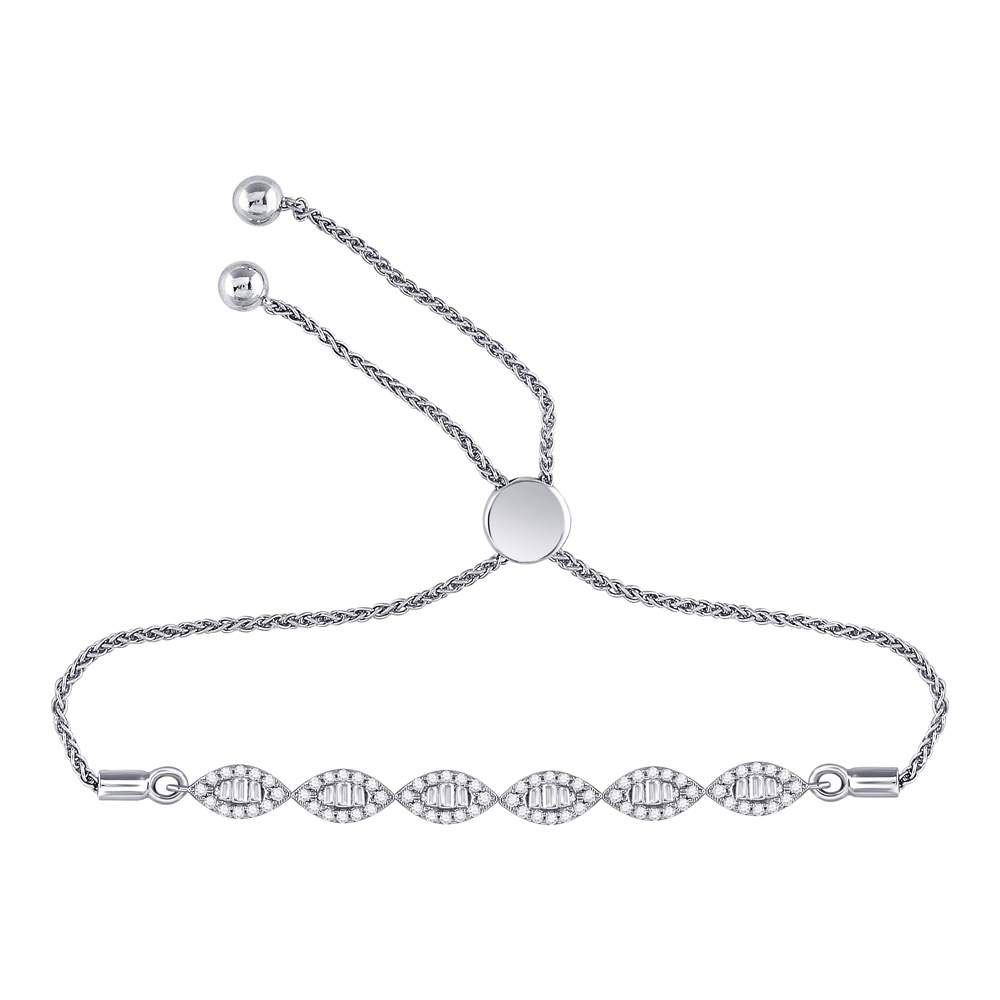 10kt White Gold Womens Round Diamond Linked Oval Bolo Bracelet 3/8 Cttw