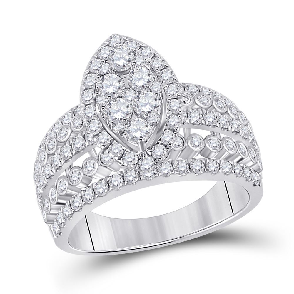 14kt White Gold Womens Round Diamond Marquise-shape Cluster Ring 1-3/4 Cttw