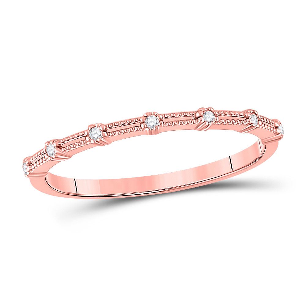 10kt Rose Gold Womens Round Diamond Milgrain Stackable Band Ring 1/20 Cttw