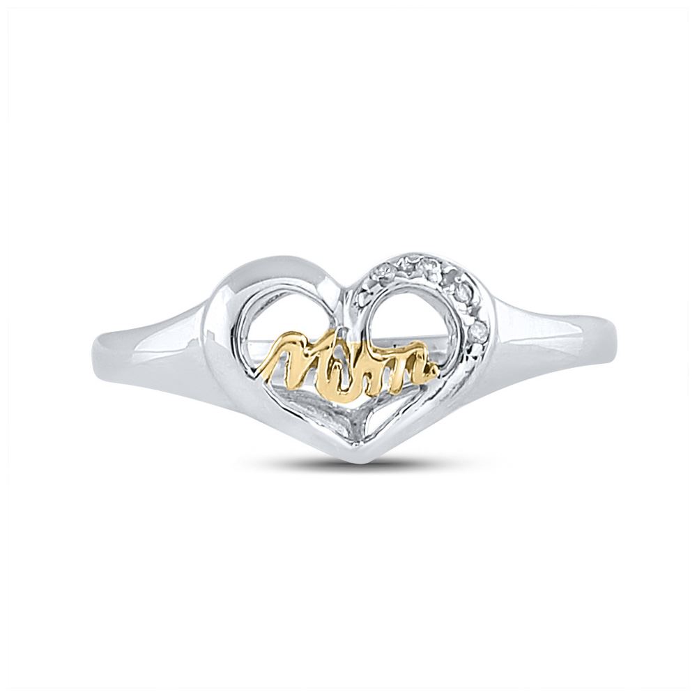 Sterling Silver Womens Round Diamond Mom Heart Ring .02 Cttw