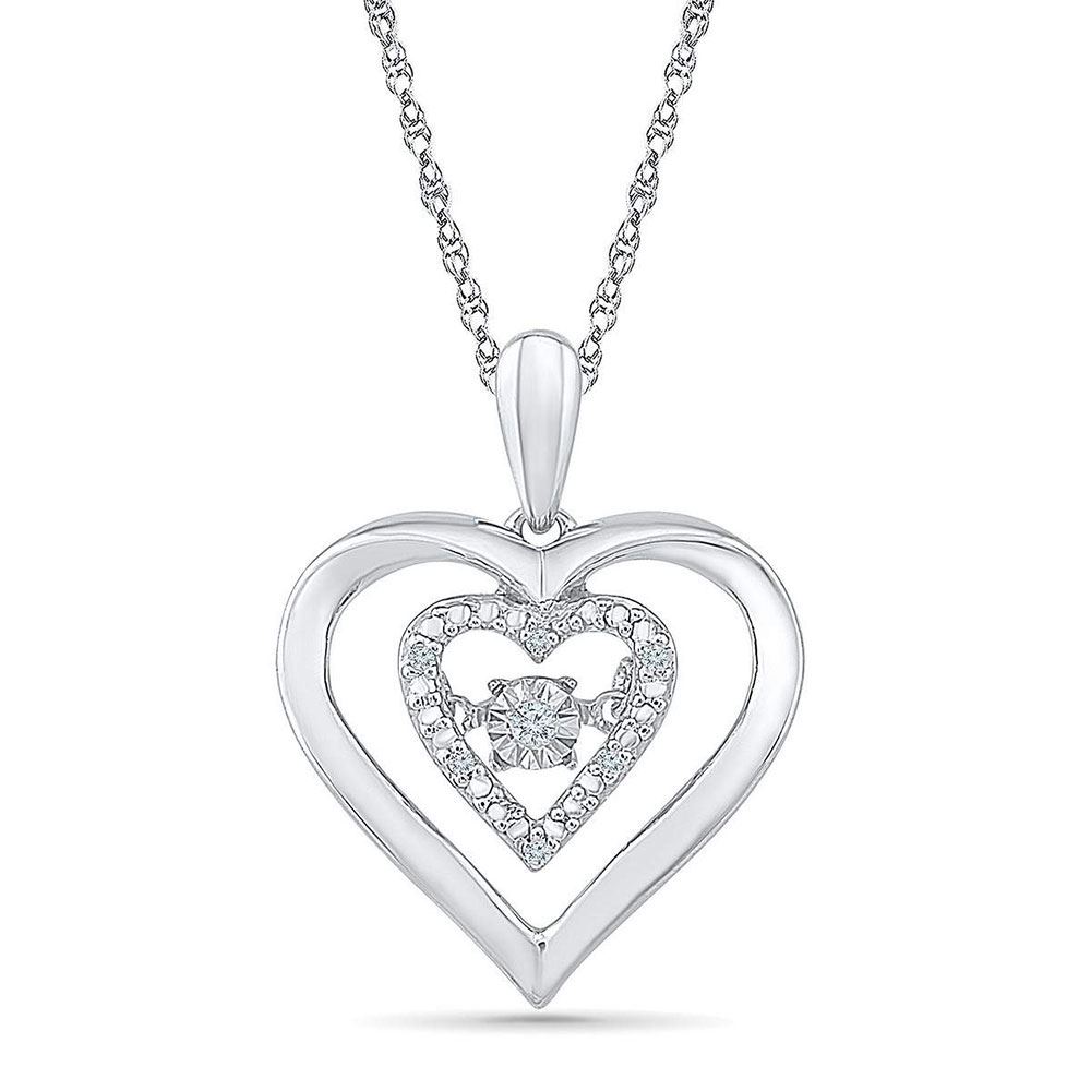 Sterling Silver Womens Round Diamond Moving Heart Pendant .03 Cttw
