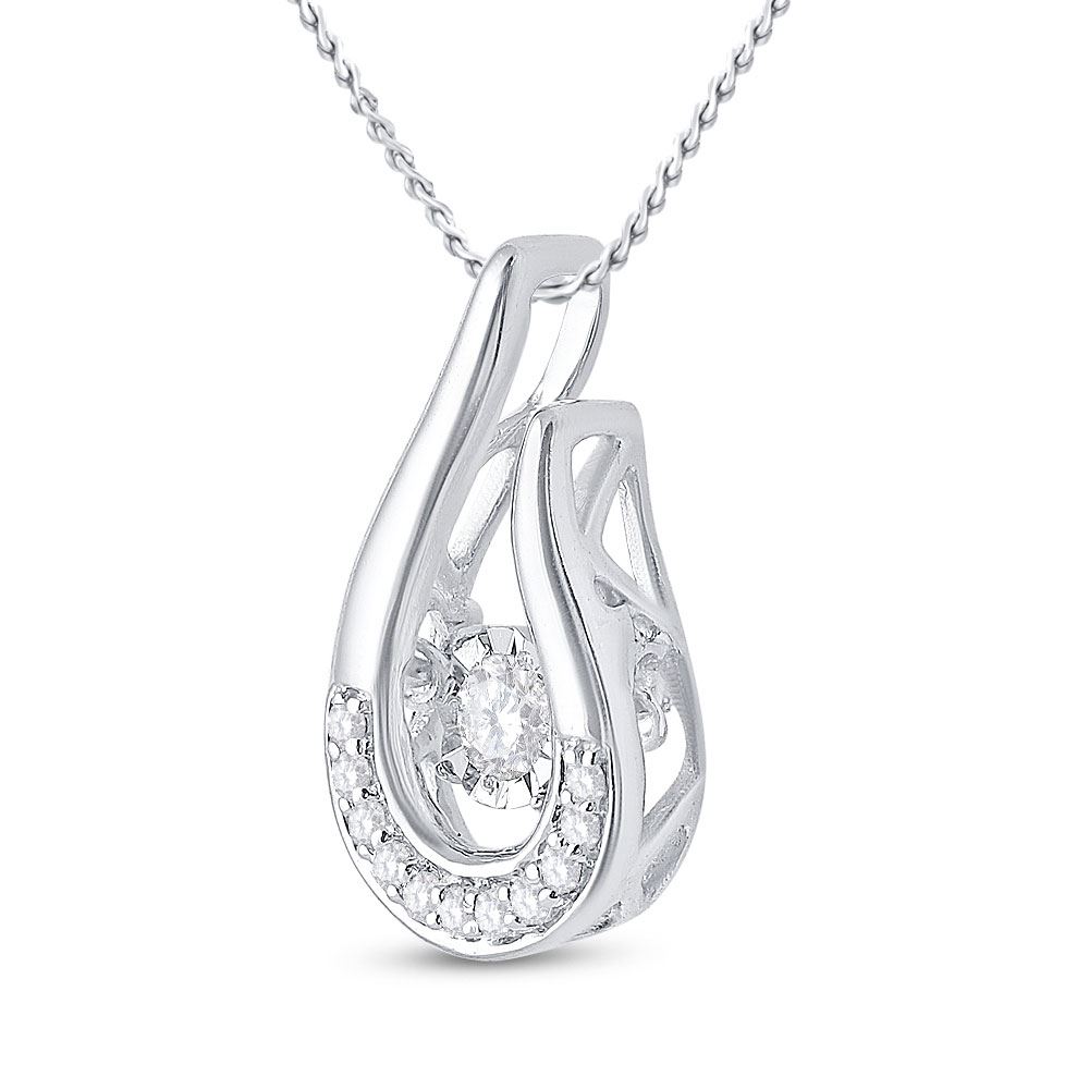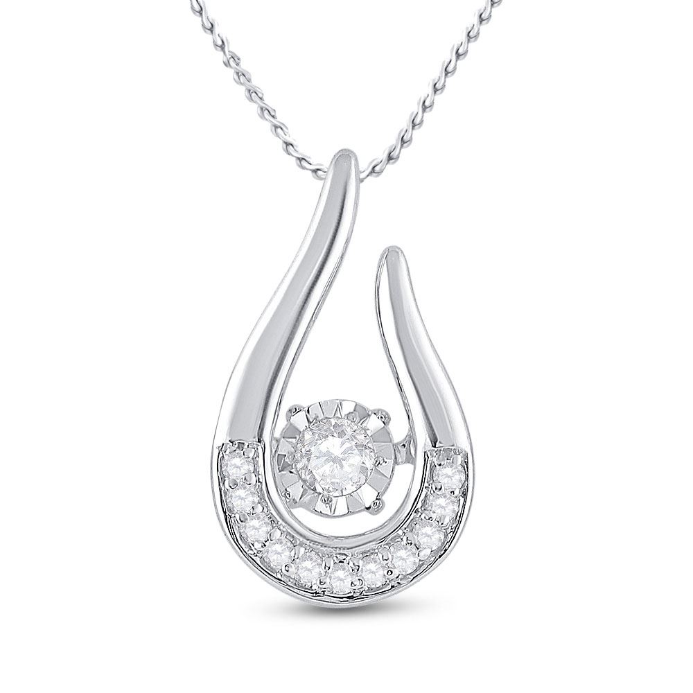 10kt White Gold Womens Round Diamond Moving Teardrop Solitaire Pendant 1/10 Cttw