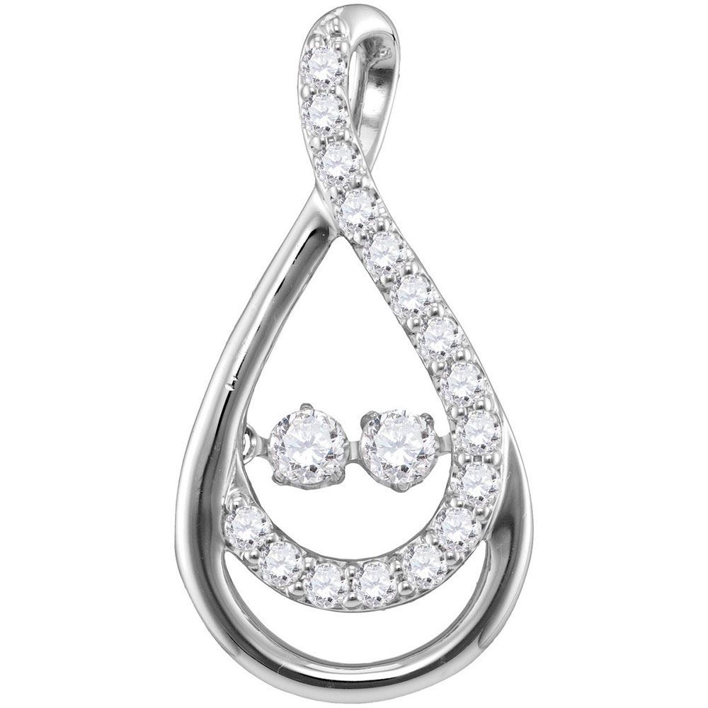 REF-44V5A - SKU: GD115326 ---- Diamond Moving Twinkle 2-Stone Teardrop Pendant 1/2 Cttw 10kt White Gold
