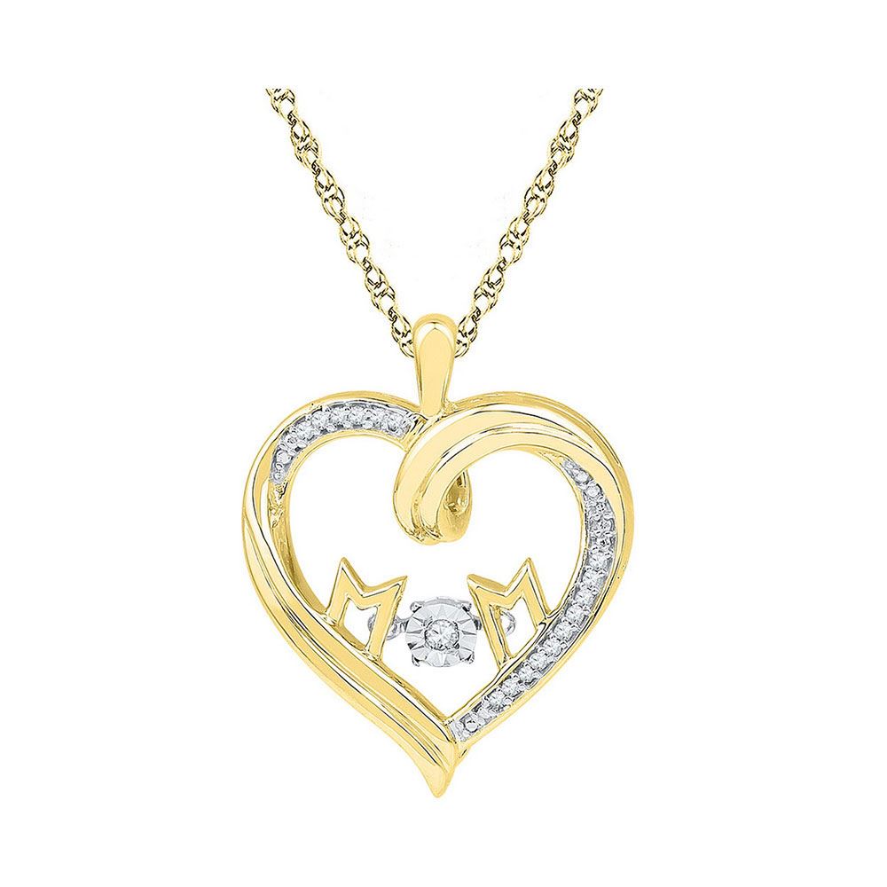 REF-20F0N - SKU: GD107599 ---- Diamond Moving Twinkle Mom Heart Pendant 1/12 Cttw 10kt Yellow Gold