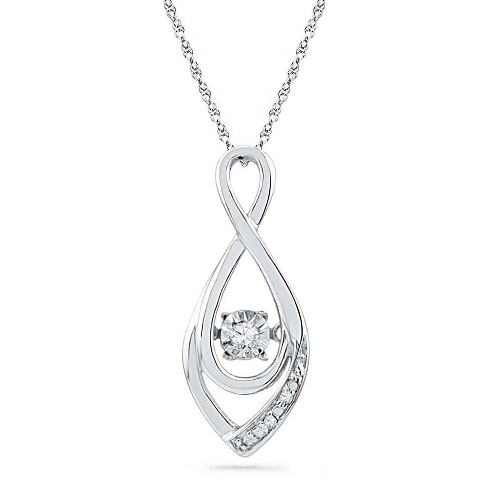 10kt White Gold Womens Round Diamond Moving Twinkle Solitaire Teardrop Pendant 1/20 Cttw