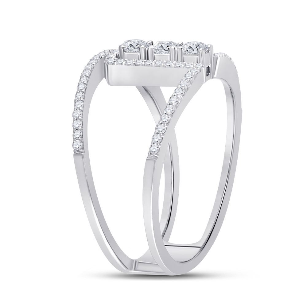 10kt White Gold Womens Round Diamond Negative Space 3-stone Ring 3/8 Cttw