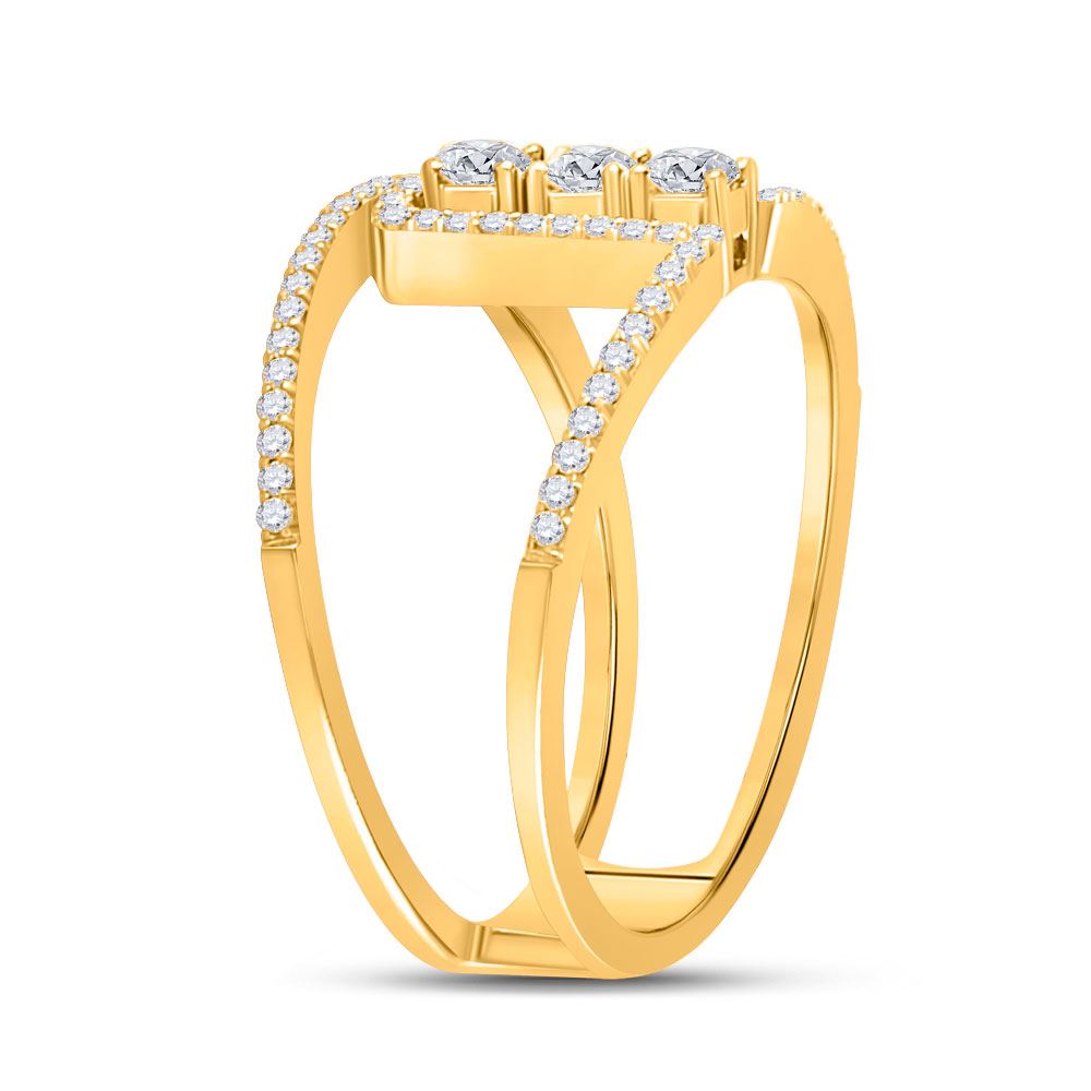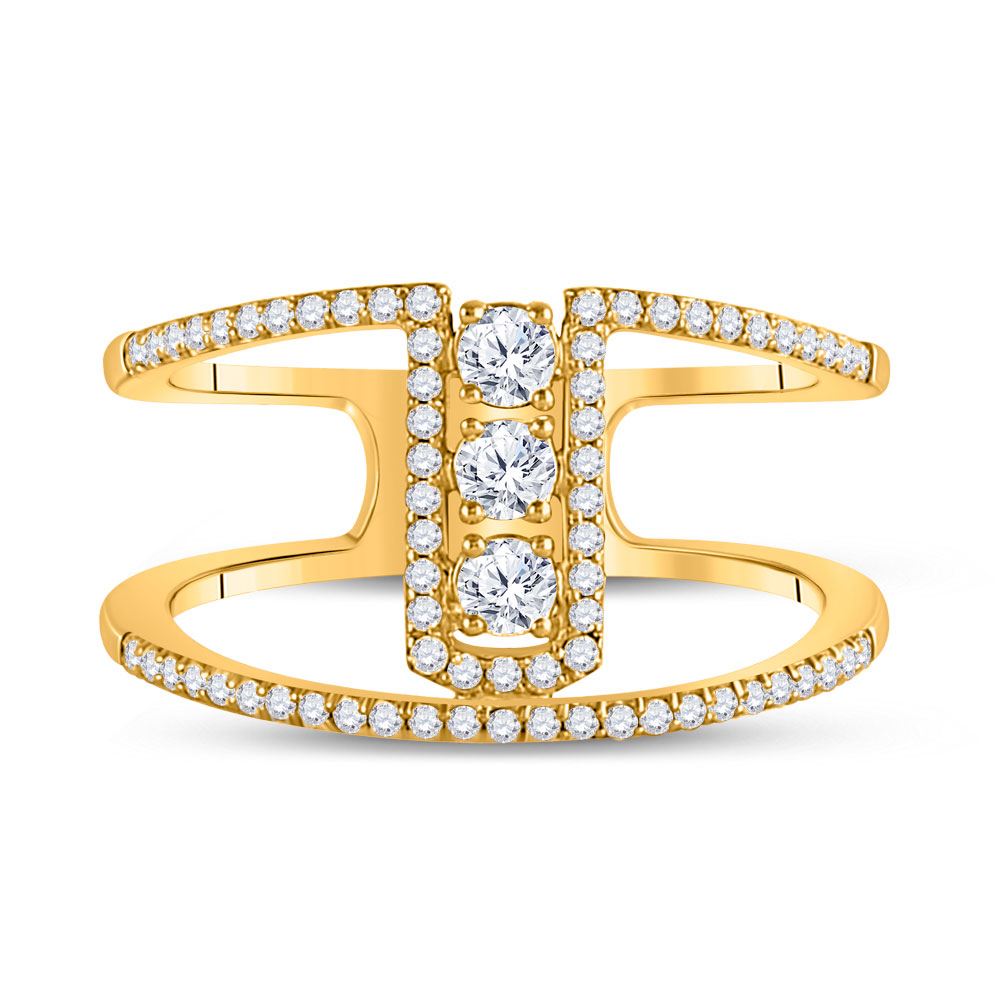 10kt Yellow Gold Womens Round Diamond Negative Space 3-stone Ring 3/8 Cttw