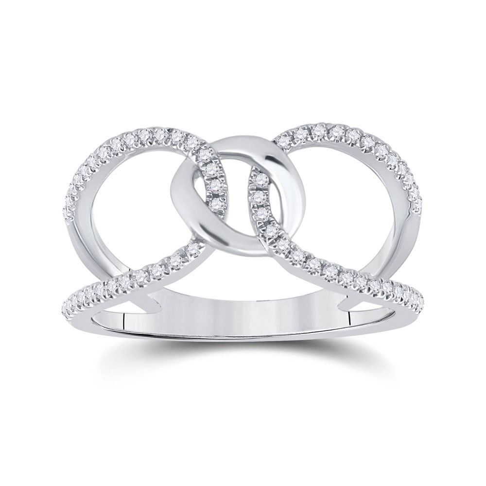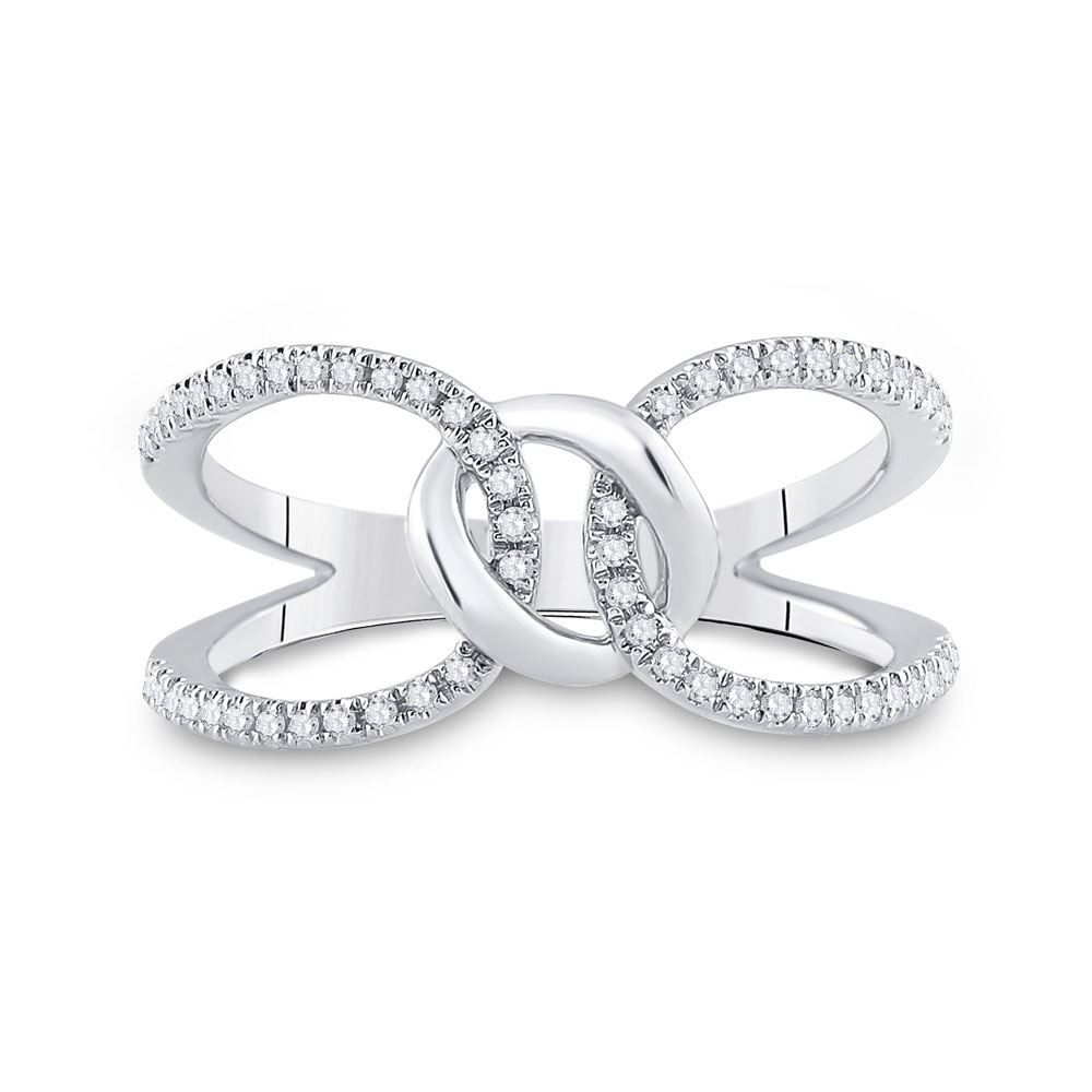 14kt White Gold Womens Round Diamond Negative Space Link Fashion Ring 1/6 Cttw