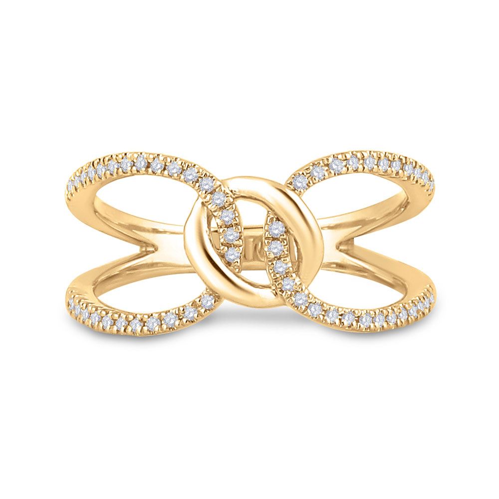 14kt Yellow Gold Womens Round Diamond Negative Space Link Fashion Ring 1/6 Cttw